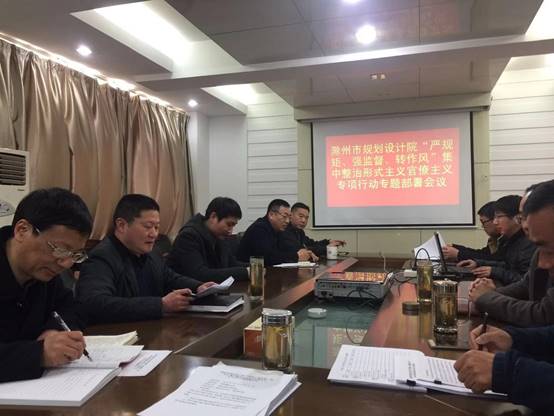 2019年3月14日下午,市規(guī)劃設(shè)計(jì)院召開“嚴(yán)規(guī)矩、強(qiáng)監(jiān)督、轉(zhuǎn)作風(fēng)”集中整治形式主義官僚主義專項(xiàng)行動專題部署會議,院班子成員、各部門負(fù)責(zé)人及全體黨員參加了會議,會議由院黨支部書記、院長賀玉龍同志主持。
