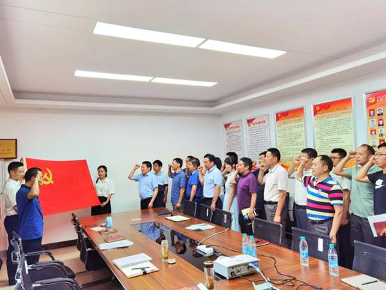 最后,全體黨員面對鮮紅的中國共產(chǎn)黨黨旗,莊嚴地舉起右手,握緊拳頭,集體宣讀入黨誓詞,重溫入黨時的莊嚴承諾和堅定決心。紛紛表示,要不斷提高黨性修養(yǎng),堅定理想信念,自覺踐行黨的宗旨,充分發(fā)揮先鋒模范作用,切實把初心使命變成銳意進取、開拓創(chuàng)新的精氣神和埋頭苦干、真抓實干的自覺行動,以優(yōu)異的成績向建黨99周年獻禮。